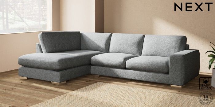 7.2.10 Houghton Deep Sit Large Corner Chaise - Left Hand Chunky Boucle Easy Clean Mid Grey Large Square Angle - Chrome Metal | Made Click here to use our website with more accessibility support, for example screen readers