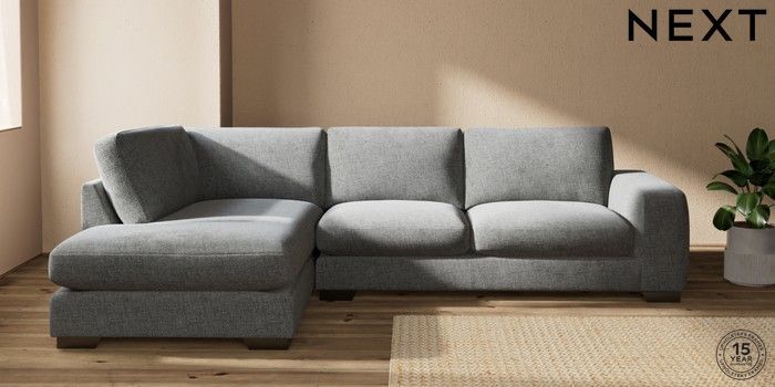 7.2.10 Houghton Deep Sit Large Corner Chaise - Left Hand Chunky Chenille Dark Grey Large Square Angle - Gunmetal | Made Click here to use our website with more accessibility support, for example screen readers