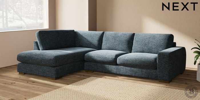 7.2.10 Houghton Deep Sit Large Corner Chaise - Left Hand Chunky Chenille Dark Navy Blue Large Square Angle - Mid | Made Click here to use our website with more accessibility support, for example screen readers