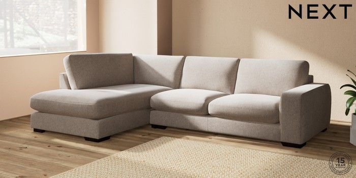 7.2.10 Houghton Deep Sit Large Corner Chaise - Left Hand Chunky Chenille Light Dove Large Square Angle - Dark | Made Click here to use our website with more accessibility support, for example screen readers