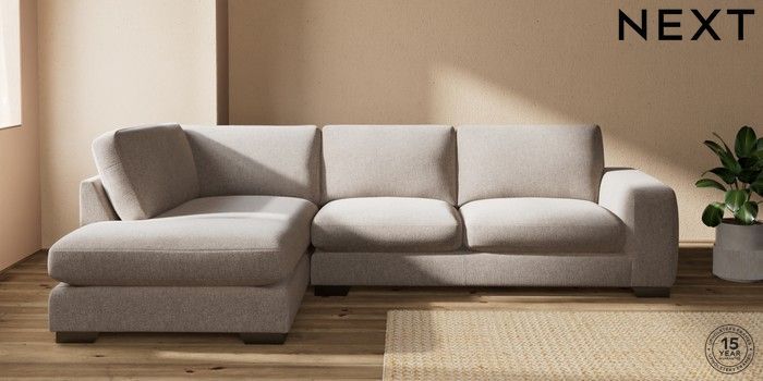 7.2.10 Houghton Deep Sit Large Corner Chaise - Left Hand Chunky Chenille Light Dove Large Square Angle - Gunmetal | Made Click here to use our website with more accessibility support, for example screen readers