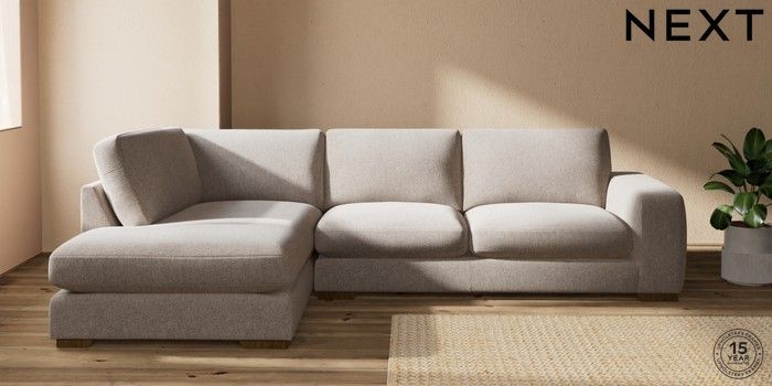 7.2.10 Houghton Deep Sit Large Corner Chaise - Left Hand Chunky Chenille Light Dove Large Square Angle - Mid | Made Click here to use our website with more accessibility support, for example screen readers