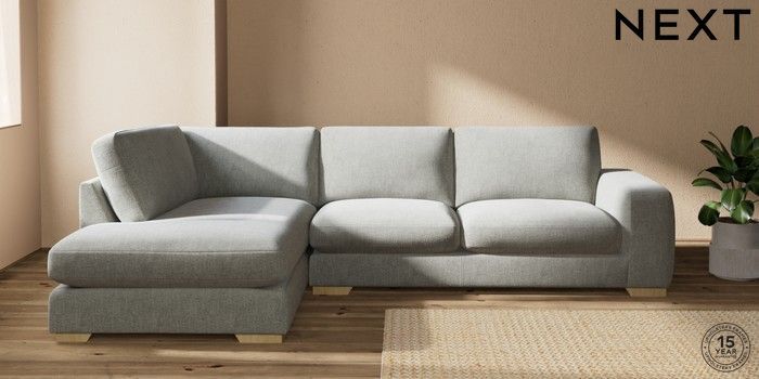 7.2.10 Houghton Deep Sit Large Corner Chaise - Left Hand Chunky Chenille Light Grey Large Square Angle - Light | Made Click here to use our website with more accessibility support, for example screen readers