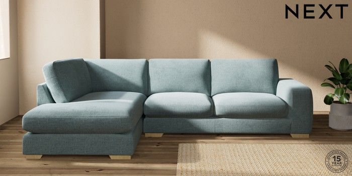 7.2.10 Houghton Deep Sit Large Corner Chaise - Left Hand Chunky Chenille Light Teal Green Large Square Angle - Light | Made Click here to use our website with more accessibility support, for example screen readers
