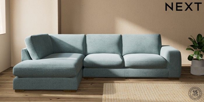 7.2.10 Houghton Deep Sit Large Corner Chaise - Left Hand Chunky Chenille Light Teal Green Large Square Angle - Mid | Made Click here to use our website with more accessibility support, for example screen readers