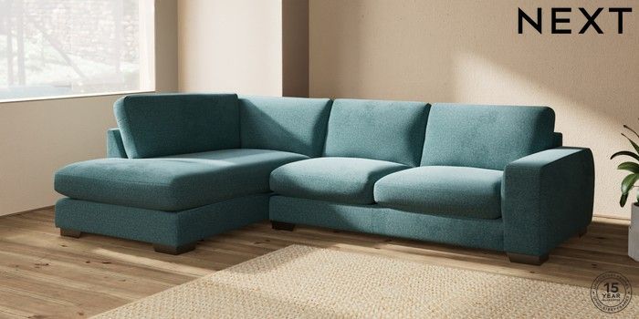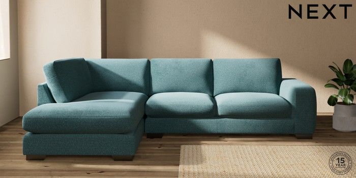 7.2.10 Houghton Deep Sit Large Corner Chaise - Left Hand Chunky Chenille Mid Teal Green Large Square Angle - Gunmetal | Made Click here to use our website with more accessibility support, for example screen readers