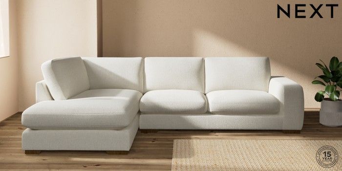7.2.10 Houghton Deep Sit Large Corner Chaise - Left Hand Chunky Texture Oyster Large Square Angle - Mid | Made Click here to use our website with more accessibility support, for example screen readers