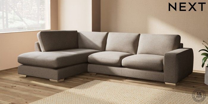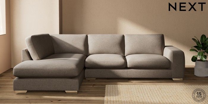 7.2.10 Houghton Deep Sit Large Corner Chaise - Left Hand Chunky Weave Dark Natural Large Square Angle - Chrome Metal | Made Click here to use our website with more accessibility support, for example screen readers