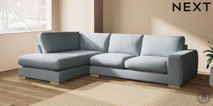 7.2.10 Houghton Deep Sit Large Corner Chaise - Left Hand Chunky Weave Mid Blue Large Square Angle - Light | Made Click here to use our website with more accessibility support, for example screen readers
