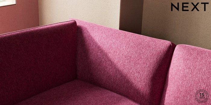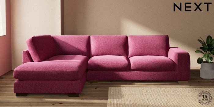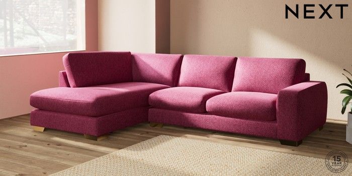 7.2.10 Houghton Deep Sit Large Corner Chaise - Left Hand Cotswold Chenille Dark Raspberry Pink Large Square Angle - Brushed Brass | Made Click here to use our website with more accessibility support, for example screen readers