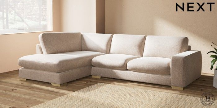 7.2.10 Houghton Deep Sit Large Corner Chaise - Left Hand Cotswold Chenille Light Natural Large Square Angle - Light | Made Click here to use our website with more accessibility support, for example screen readers