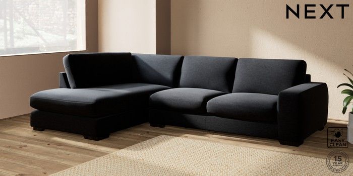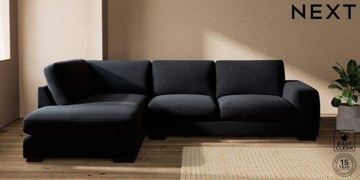 7.2.10 Houghton Deep Sit Large Corner Chaise - Left Hand Fine Chenille Easy Clean Black Large Square Angle - Dark | Made Click here to use our website with more accessibility support, for example screen readers