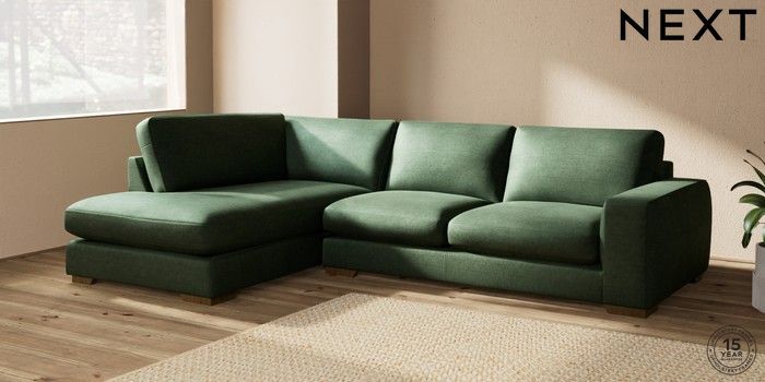 7.2.10 Houghton Deep Sit Large Corner Chaise - Left Hand Luxe Chenille Dark Green Large Square Angle - Mid | Made Click here to use our website with more accessibility support, for example screen readers