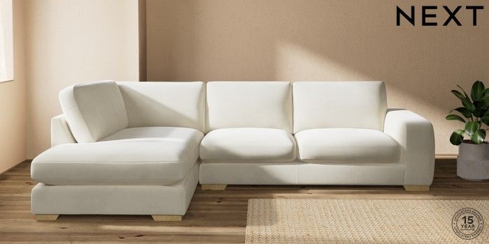 7.2.10 Houghton Deep Sit Large Corner Chaise - Left Hand Luxe Chenille Oyster Large Square Angle - Light | Made Click here to use our website with more accessibility support, for example screen readers