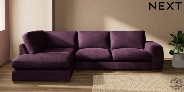 7.2.10 Houghton Deep Sit Large Corner Chaise - Left Hand Plush Chenille Dark Plum Purple Large Square Angle - Mid | Made Click here to use our website with more accessibility support, for example screen readers