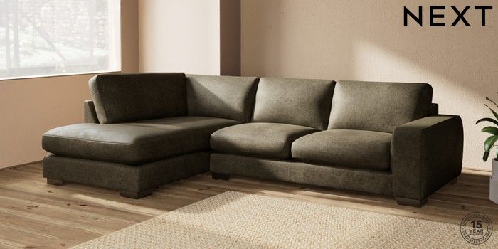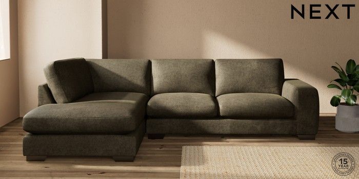 7.2.10 Houghton Deep Sit Large Corner Chaise - Left Hand Plush Chenille Moss Green Large Square Angle - Gunmetal | Made Click here to use our website with more accessibility support, for example screen readers