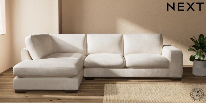 7.2.10 Houghton Deep Sit Large Corner Chaise - Left Hand Plush Chenille Oyster Large Square Angle - Gunmetal | Made Click here to use our website with more accessibility support, for example screen readers