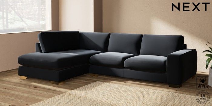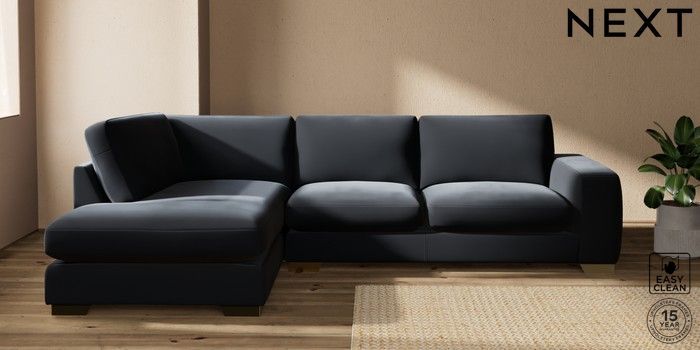 7.2.10 Houghton Deep Sit Large Corner Chaise - Left Hand Plush Velvet Easy Clean Charcoal Grey Large Square Angle - Brushed Brass | Made Click here to use our website with more accessibility support, for example screen readers