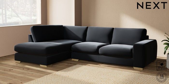 7.2.10 Houghton Deep Sit Large Corner Chaise - Left Hand Plush Velvet Easy Clean Charcoal Grey Large Square Angle - Light | Made Click here to use our website with more accessibility support, for example screen readers
