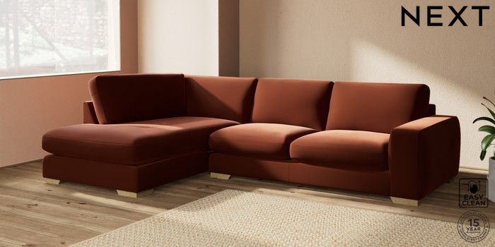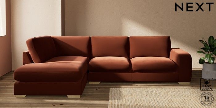 7.2.10 Houghton Deep Sit Large Corner Chaise - Left Hand Plush Velvet Easy Clean Ginger Orange Large Square Angle - Light | Made Click here to use our website with more accessibility support, for example screen readers