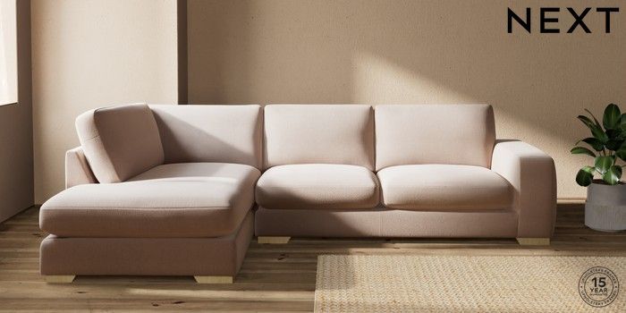 7.2.10 Houghton Deep Sit Large Corner Chaise - Left Hand Relaxed Linen Look Mid Natural Large Square Angle - Light | Made Click here to use our website with more accessibility support, for example screen readers