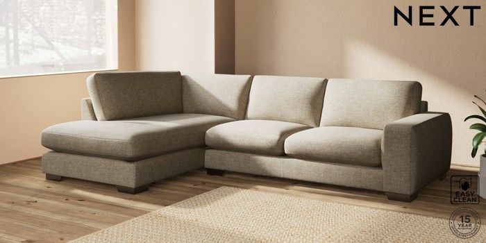 7.2.10 Houghton Deep Sit Large Corner Chaise - Left Hand Woven Chenille Easy Clean Mid Natural Large Square Angle - Gunmetal | Made Click here to use our website with more accessibility support, for example screen readers