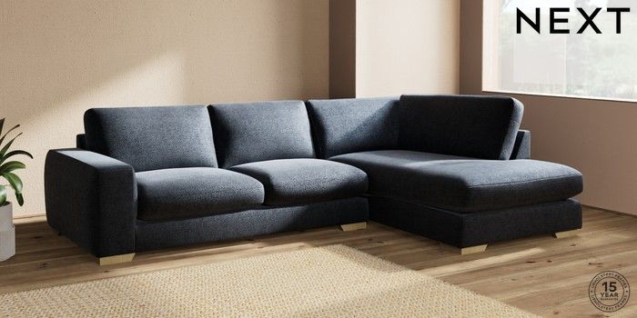 7.2.10 Houghton Deep Sit Large Corner Chaise - Right Hand Boucle Chenille Dark Slate Blue Large Square Angle - Light | Made Click here to use our website with more accessibility support, for example screen readers
