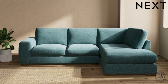 7.2.10 Houghton Deep Sit Large Corner Chaise - Right Hand Chunky Chenille Mid Teal Green Large Square Angle - Mid | Made Click here to use our website with more accessibility support, for example screen readers