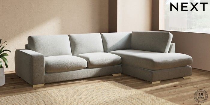 7.2.10 Houghton Deep Sit Large Corner Chaise - Right Hand Chunky Texture Dove Large Square Angle - Light | Made Click here to use our website with more accessibility support, for example screen readers