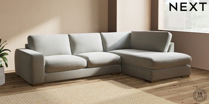 7.2.10 Houghton Deep Sit Large Corner Chaise - Right Hand Chunky Texture Dove Large Square Angle - Mid | Made Click here to use our website with more accessibility support, for example screen readers