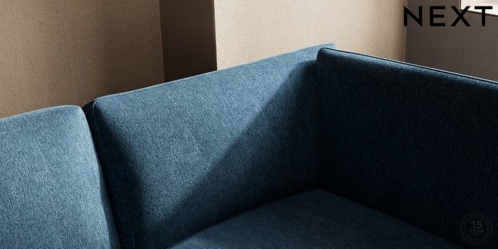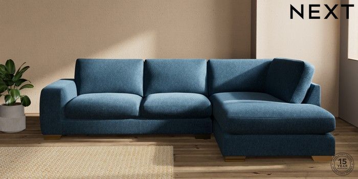 7.2.10 Houghton Deep Sit Large Corner Chaise - Right Hand Cotswold Chenille Dark Blue Large Square Angle - Brushed Brass | Made Click here to use our website with more accessibility support, for example screen readers