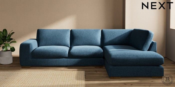 7.2.10 Houghton Deep Sit Large Corner Chaise - Right Hand Cotswold Chenille Dark Blue Large Square Angle - Mid | Made Click here to use our website with more accessibility support, for example screen readers