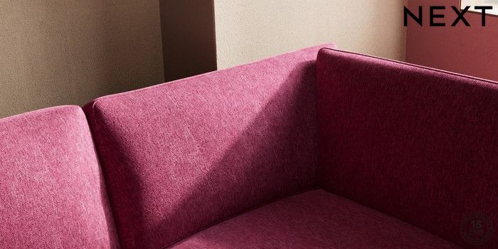 7.2.10 Houghton Deep Sit Large Corner Chaise - Right Hand Cotswold Chenille Dark Raspberry Pink Large Square Angle - Brushed Brass | Made Click here to use our website with more accessibility support, for example screen readers