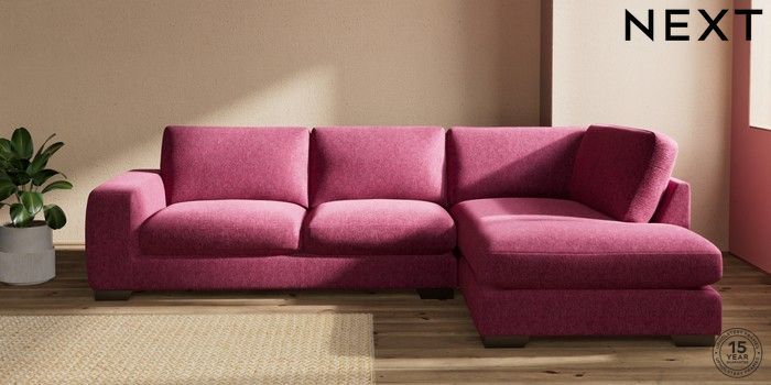 7.2.10 Houghton Deep Sit Large Corner Chaise - Right Hand Cotswold Chenille Dark Raspberry Pink Large Square Angle - Gunmetal | Made Click here to use our website with more accessibility support, for example screen readers