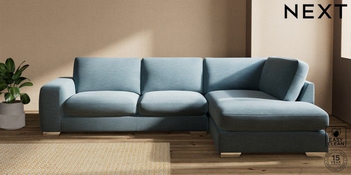 7.2.10 Houghton Deep Sit Large Corner Chaise - Right Hand Fine Chenille Easy Clean Mid Blue Large Square Angle - Chrome Metal | Made Click here to use our website with more accessibility support, for example screen readers