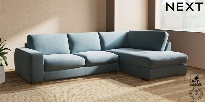 7.2.10 Houghton Deep Sit Large Corner Chaise - Right Hand Fine Chenille Easy Clean Mid Blue Large Square Angle - Mid | Made Click here to use our website with more accessibility support, for example screen readers