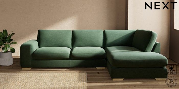 7.2.10 Houghton Deep Sit Large Corner Chaise - Right Hand Fine Chenille Easy Clean Mid Khaki Green Large Square Angle - Light | Made Click here to use our website with more accessibility support, for example screen readers