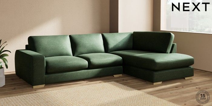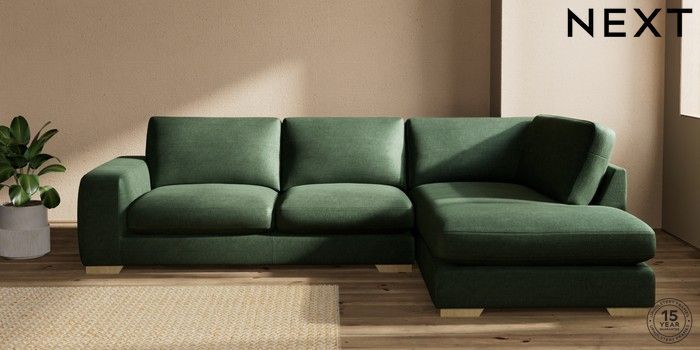 7.2.10 Houghton Deep Sit Large Corner Chaise - Right Hand Luxe Chenille Dark Green Large Square Angle - Light | Made Click here to use our website with more accessibility support, for example screen readers