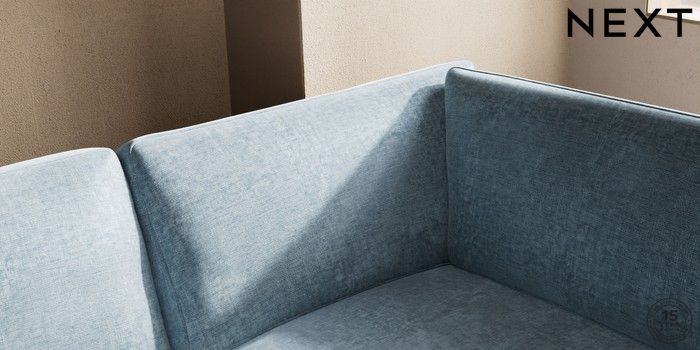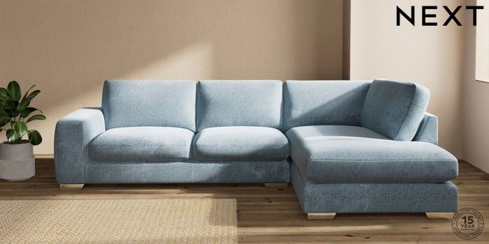 7.2.10 Houghton Deep Sit Large Corner Chaise - Right Hand Plush Chenille Light Blue Large Square Angle - Chrome Metal | Made Click here to use our website with more accessibility support, for example screen readers
