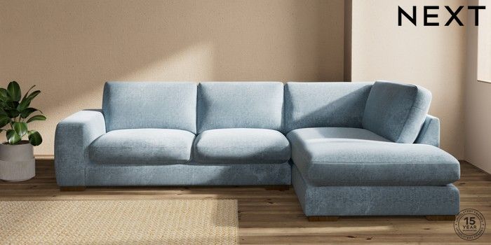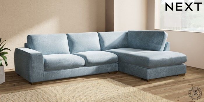 7.2.10 Houghton Deep Sit Large Corner Chaise - Right Hand Plush Chenille Light Blue Large Square Angle - Mid | Made Click here to use our website with more accessibility support, for example screen readers