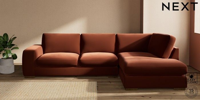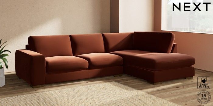 7.2.10 Houghton Deep Sit Large Corner Chaise - Right Hand Plush Velvet Easy Clean Ginger Orange Large Square Angle - Mid | Made Click here to use our website with more accessibility support, for example screen readers