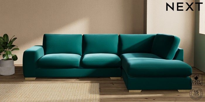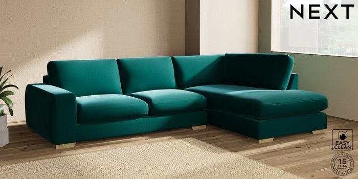 7.2.10 Houghton Deep Sit Large Corner Chaise - Right Hand Plush Velvet Easy Clean Juniper Green Large Square Angle - Light | Made Click here to use our website with more accessibility support, for example screen readers