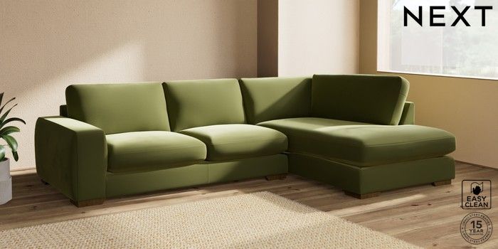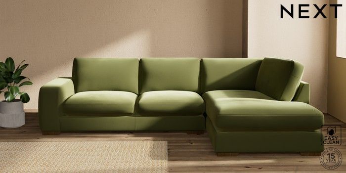 7.2.10 Houghton Deep Sit Large Corner Chaise - Right Hand Plush Velvet Easy Clean Mid Olive Green Large Square Angle - Mid | Made Click here to use our website with more accessibility support, for example screen readers