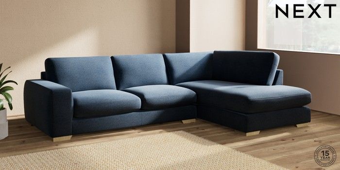 7.2.10 Houghton Deep Sit Large Corner Chaise - Right Hand Ripple Chenille Dark Blue Large Square Angle - Light | Made Click here to use our website with more accessibility support, for example screen readers