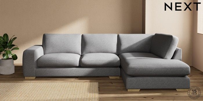 7.2.10 Houghton Deep Sit Large Corner Chaise - Right Hand Studio Chenille Mid Grey Large Square Angle - Light | Made Click here to use our website with more accessibility support, for example screen readers