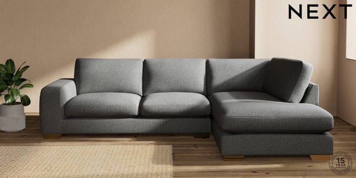 7.2.10 Houghton Deep Sit Large Corner Chaise - Right Hand Tweedy Chenille Dark Grey Large Square Angle - Brushed Brass | Made Click here to use our website with more accessibility support, for example screen readers