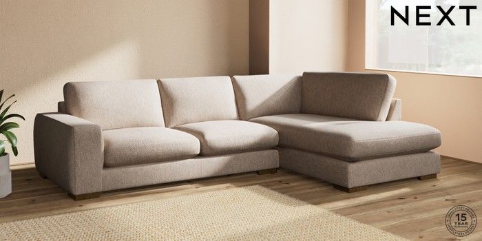 7.2.10 Houghton Deep Sit Large Corner Chaise - Right Hand Tweedy Chenille Mid Natural Large Square Angle - Mid | Made Click here to use our website with more accessibility support, for example screen readers