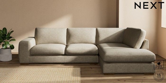 7.2.10 Houghton Deep Sit Large Corner Chaise - Right Hand Woven Chenille Easy Clean Mid Natural Large Square Angle - Mid | Made Click here to use our website with more accessibility support, for example screen readers