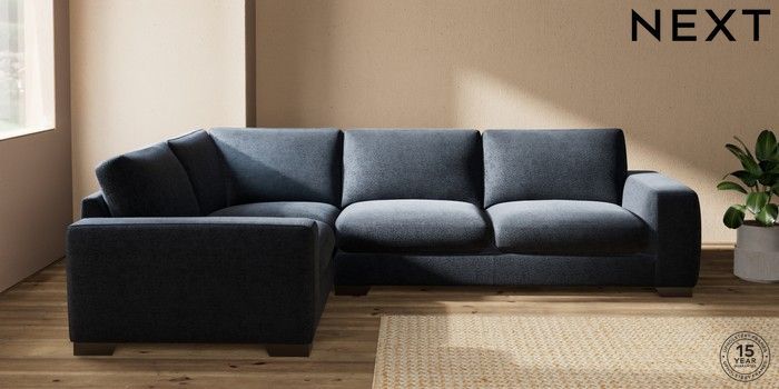 7.2.10 Houghton Deep Sit Large Corner Sofa - Left Hand Boucle Chenille Dark Slate Blue Large Square Angle - Gunmetal | Made Click here to use our website with more accessibility support, for example screen readers