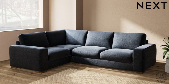 7.2.10 Houghton Deep Sit Large Corner Sofa - Left Hand Boucle Chenille Dark Slate Blue Large Square Angle - Mid | Made Click here to use our website with more accessibility support, for example screen readers